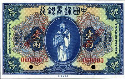 1920. P-A134s. $1 Specimen. Unc. Red specimen overprint, POC and "000000" serial numbers. Red ink spots on top back margin. ABNC.