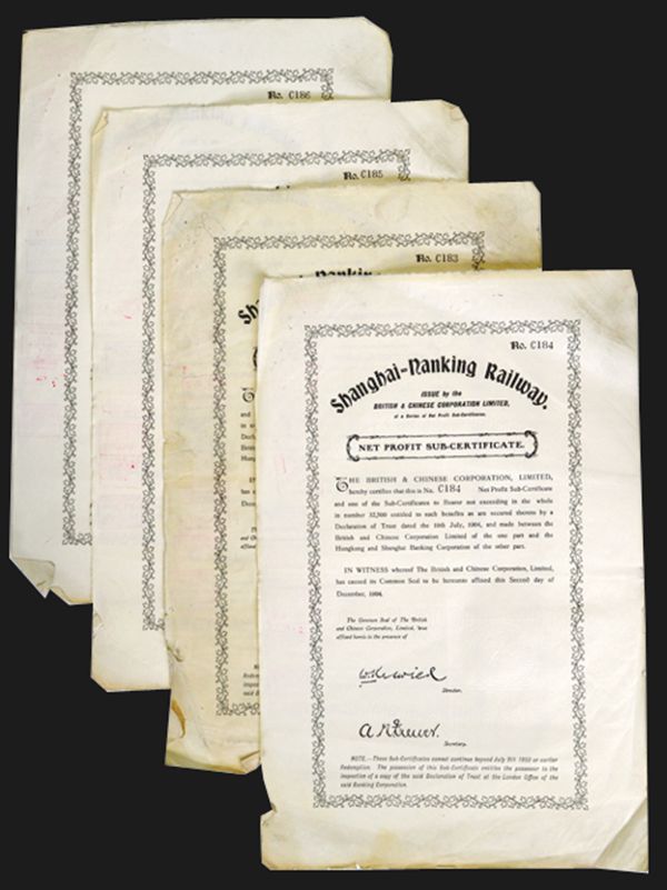 China, black borders and print, VF+ on average, some with rough margins. [4]