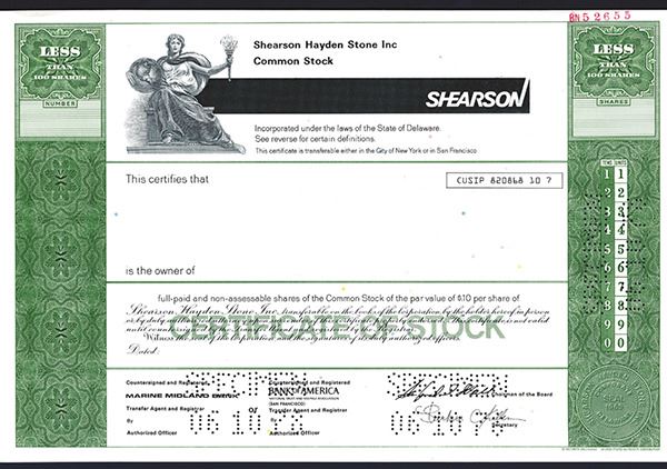 Delaware, 1978, Specimen, <100 Shares, Black on green border and underprint, Allegorical woman holding torch and globe top left, VF-XF condition, SCUSBNC.