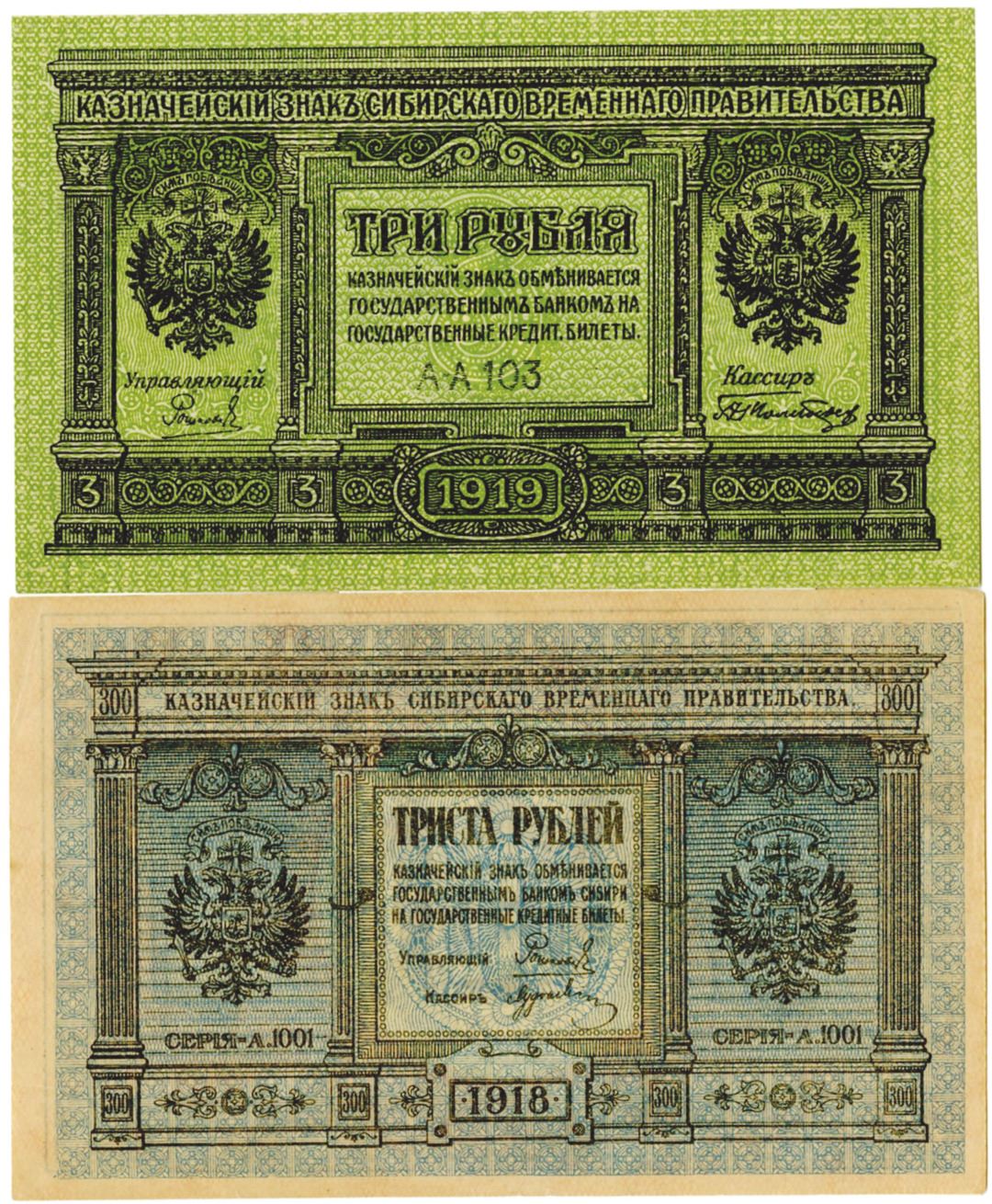 Russia. Pair of 3 Rubles & 300 Rubles from the second treasury token currency series. P-S826; S827. Unc. (2)