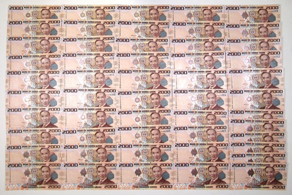 Sierra Leone, 2010. 2000 Leones, P-31 (52), Issued Banknote Collection, Brown and blue on m/c underprint with I.T.A. Wallace-Johnson at right, Back is Brown and blue on m/c with modern building at center, XF to AU condition, TDLR. (52). Sold "AS IS" no returns accepted.