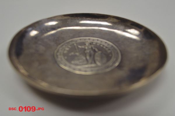 British Silver Trade Dollar, 85mm, 68.4gms, the inner part of the dish focuses on Standing Britannia, the back has the reverse of the coin and 3 Hallmark punches, one in Chinese and two with Latin alphabet letters. Very attractive.