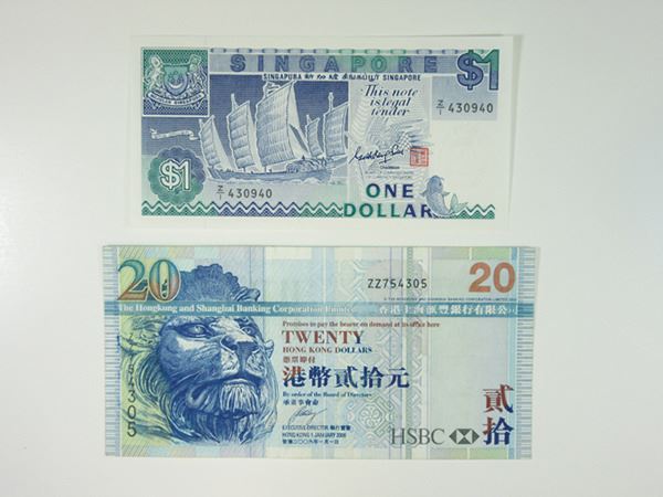 Lot of 2 notes, Includes Hong Kong P-207a Fine; Singapore P-18aR Unc. (2)