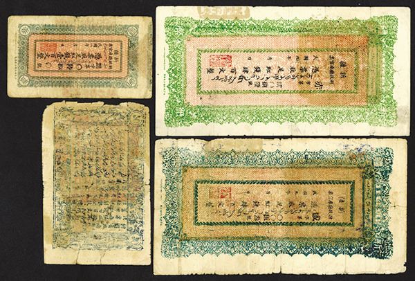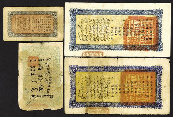 China. 400 Cash. Sinkiang. P-S1851 plus two others. Fine. 4 pieces.