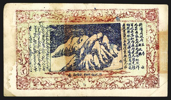 5 Taels, P-S1780, (S/M#H123.5-10), Issued, Snow capped mountains at center, Choice VG to XF with light stains on the right border. Scarce in higher grade.