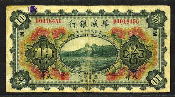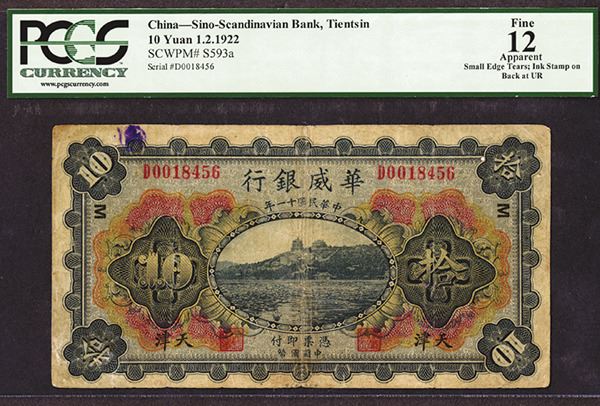 China, 10 Yuan, P-S593b, S/M#H192-6b, Issued banknote, Green on m/c, coastline at center, back green, Control Mark "M" on face. Fine condition, PCGS graded Fine 12 Apparent.