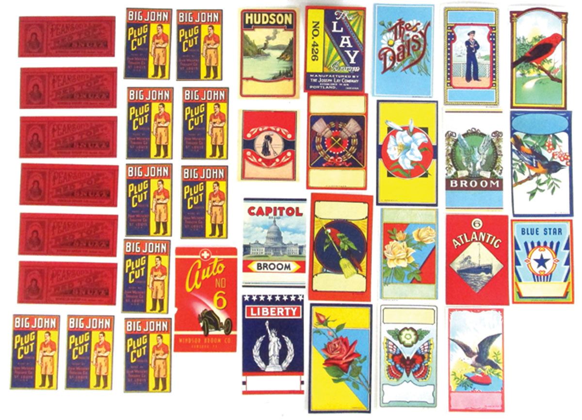 Massachusetts..., Missouri and other locations. Lot of 36 Product Labels from a variety of companies, Includes: Pearon's Red Top Snuff (6); Auto No. 6; The Daisy; Capital Broom and more. Labels are in XF-Unc. condition. (36). Sold "AS IS" no returns accepted.