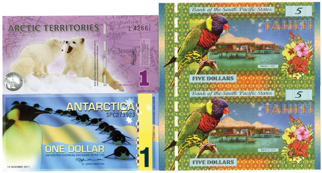 Solomon Islands, Fiji, Samoa, Tonga, Antarctica.... Group of 25 notes, ca.1990s, includes Central Bank of Samoa 2 Tala P-31e (5); Kingdom of Tonga 2 Pa'anga P-38 (1); Fiji $5 P-115 Replacement note, (1); Solomon Islands $5 Unlisted (13); Tahiti $5 Unlisted (2), Antarctica $1 Unlisted (1); Arctic Territories $1 Unlisted (1); Chatham Islands 1 Koha Unlisted (1). All XF-CU condition or better, (25). (Sold "AS IS", No returns accepted)