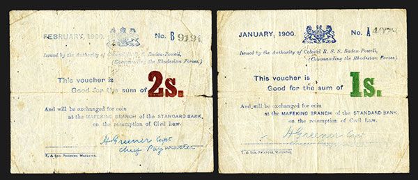 Lot of 2 notes. 1 and 2 Shilling.. 1 Shilling, Pick #S651a, January Issue; 2 Shilling, Pick #S652b. February Issue. Both VG to VG+ or so. Paper tone. With blind embossed 1 penny tax stamp as expected.