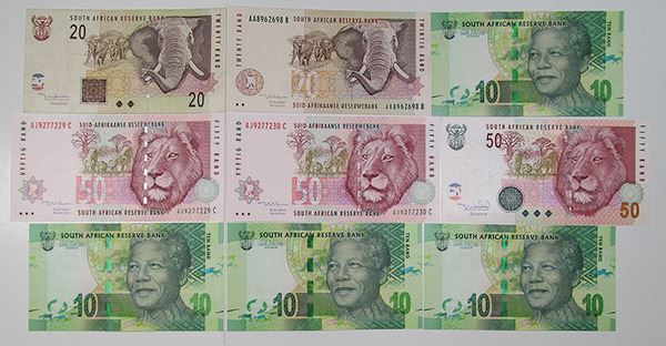 South Africa.... Lot includes a diverse group of various South African issues including two earlier 1 Pound notes, and many different 1, 2, 5, 10, 20, and 50 Rand banknotes. P-92; 93; 102; 103; 104; 111; 113; 116 (3); 118; 119; 120; 121; 129 (3); 130 (3); 133 (4). Fine to Unc. (25)