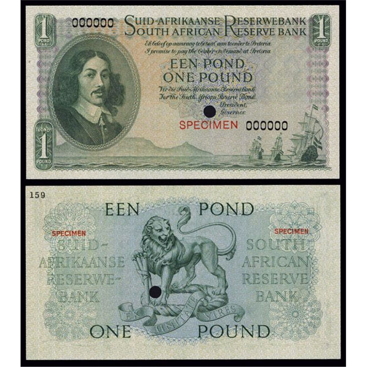 Pretoria, South Africa, ND (1961), 1 Pound, P-93ct Unlisted Color Trial Specimen, Purple on m/c instead of issued blue on m/c, Portrait of Jan van Riebeeck at left, ships on lower right, Specimen overprints, POC's, No signature, S/N 000000, Choice to Gem Uncirculated, Rare note as trial color.