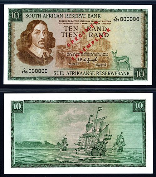 Pretoria, South Africa, ND (1975), 10 Rands, P-113s3, Specimen, van Riebeeck Watermark, S/N C/269 000000, Specimen overprints, PMG graded Superb Gem Uncirculated 68 EPQ, Rare as specimen and Finest Known as well as only one graded by PMG, this will be impossible to be improved upon.