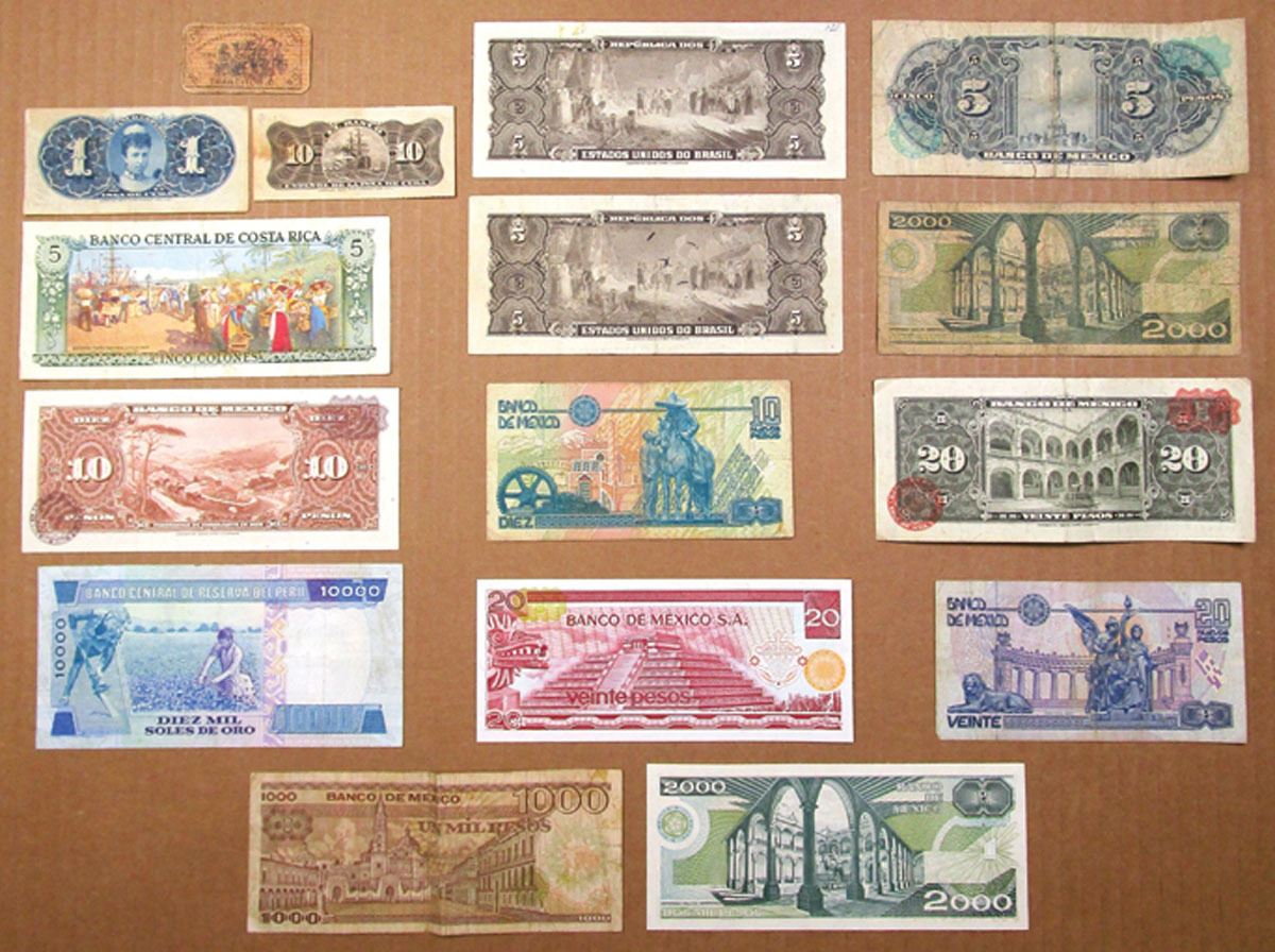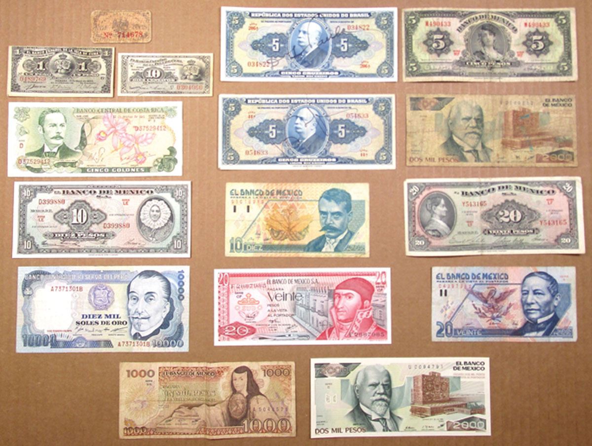 South America, 1896-1981. Lot of 15+ Issued Banknotes from Mexico, Peru, Costa Rica, and Brazil. Notes range from Fine to XF+ condition. (16).