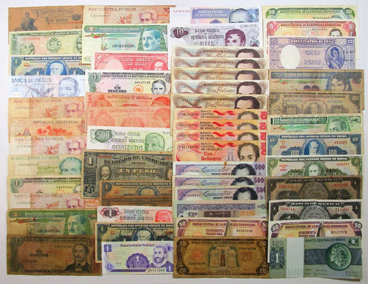 South America, 1910-90. Lot of 50 Issued Banknotes from Various South American Countries, Including: Dominican Republic, Guatemala, Venezuela, Argentina, Brazil, Mexico, Ecuador and more. Notes range from Good to Uncirculated condition. (50). Sold "AS IS" no returns accepted.