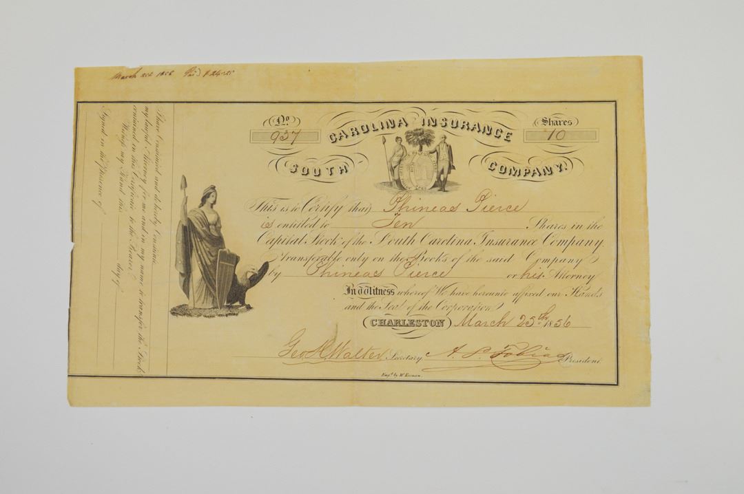 Charleston, South Carolina. 10 Shares I/U Capital Stock Certificate, Black printing on black border, Seal of South Carolina at top with an allegorical woman at left side, VF-XF condition with minor toning on certificate, W. Keenan.