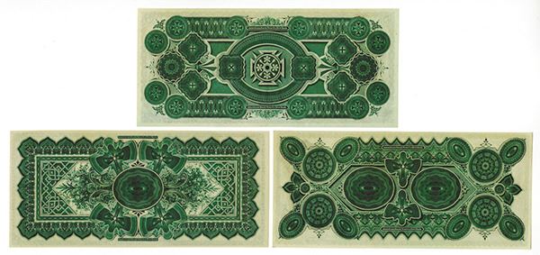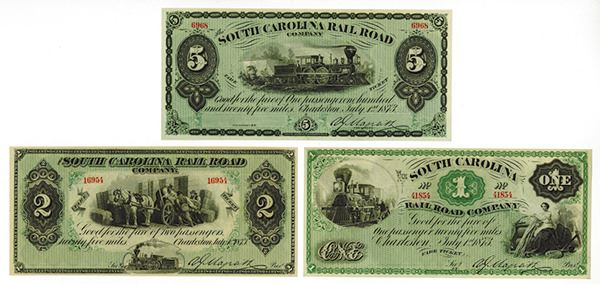 Charleston, SC, Lot of 3 notes, all remainders, includes $1; $2 and $5, All are Choice AU to Gem Unc., Attractive black on light green underprint for each with different vignettes, all by ABNC.