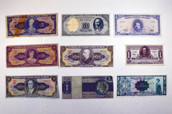 Brazil (120), Bolivia (2), Chile (13), Cuba, Mexico, Paraguay (15) assortment. A few Brazil notes stained and water damaged. A variety of types and denominations, some nice, some awful or damaged. Over 150 pieces.