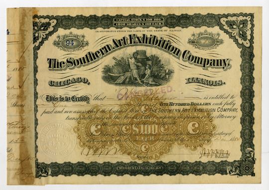 New Orleans, Louisiana, 1886. 1 Share I/C Stock Certificate. Black on brown underprint, Teacher and student with telescope at center, S/N 94, VF-XF condition, WBNC. In the late 19th century, it was popular in American to produce rotunda panoramas of historical scenes. These were the biggest paintings in the world, 50 x 400 feet, housed in their own rotundas which were 16-sided polygons. While these panoramas travelled to major cities and exhibitions, in 1893, Chicago had 6 panorama companies and 6 panorama rotundas. One is believed to have been located near the 1893 Columbian Exposition. The Battle of Gettysburg opened on October 22, 1883 in its Rotunda at Wabash and Hubbard (7th Street). The other three followed: Boston, December, 1884; Philadelphia, July, 1886; and Brooklyn, October, 1886. Mr. Pearl Wright was a New Orleans businessman who purchased 10 shares @ $1,000 of the Southern Art Exhibition Company to install Paul Philippoteaux's SIEGE OF PARIS at the Louisiana (Inc. in Illinois). World's Industrial & Cotton Centennial Exposition, New Orleans 1884-5, to replace Louis Braun's BATTLE OF SEDAN. He would be chairman of the World's Panorama Exposition 1915 and was a member for Louisiana of the Republican National Committee. The entrance fee to these remarkable illusions and pictures was 50 cents, and you could stay as long as you please, an interesting lecture being delivered meanwhile. Paris by Moonlight was the first cyclorama seen in Chicago. It was shown in the Exposition Building in 1875. Jerusalem, The Siege of Paris, Shiloh, and the Monitor and Merrimac have since been exhibited to admiring throngs. The artist who gained greatest celebrity in this work had the alarming name of Philippoteaux. Paul Philippoteaux (1846-1923), principal artist and creator of the Gettysburg Cyclorama, first visited the battlefield in 1882. To prepare the project, he built a 30 foot platform on site to view the landscape. He studied War Department maps and conducted interviews with participants— Generals Hancock, Webb, Gibbon, and Doubleday, among others. He also relied on photographs of the battlefield taken by William Tipton. Philippoteaux first created a 1/10 scale oil study. He then sketched the entire composition in pen and ink upon which he drew grid lines and projected the drawing, with grid lines, onto the full canvas. The process of planning and executing the project took about two years.