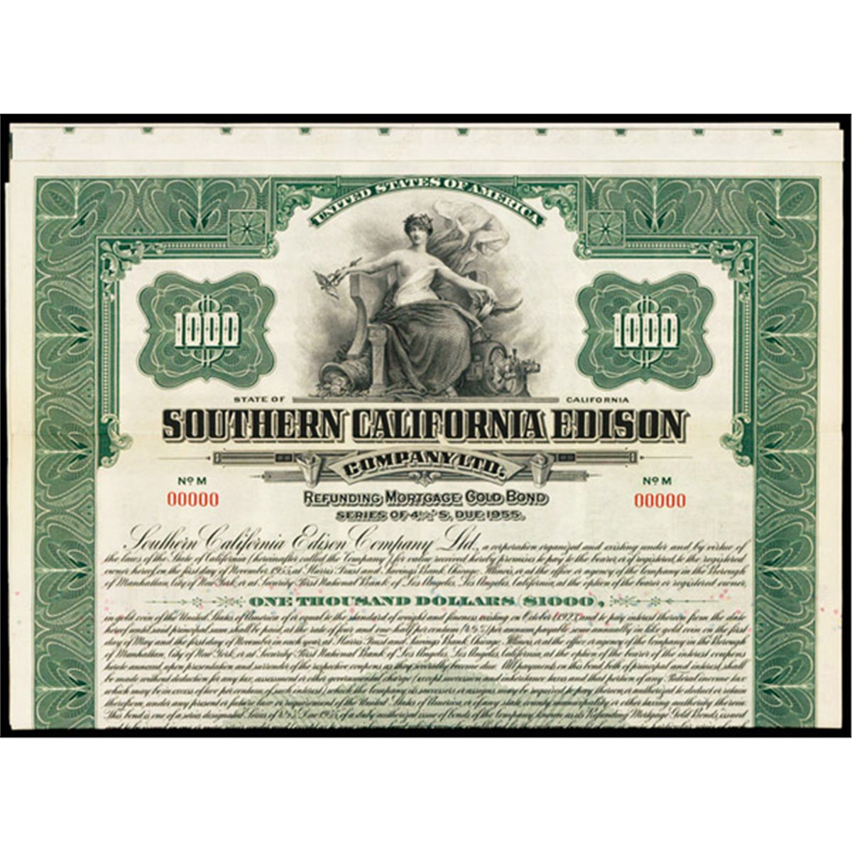 California, 1930, $1000, Proof bond, Woman with dynamo and cornucopia, Green, coupons attached, ABNC, POC's, XF.