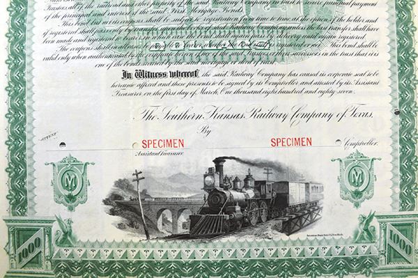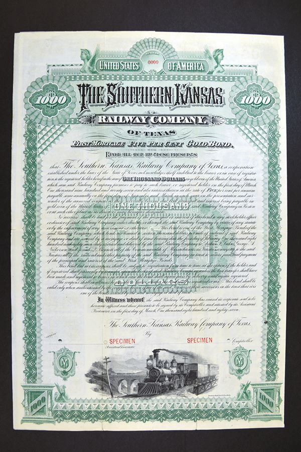 Texas. $1000 5% Gold Coupon Bond Specimen. ABNC. POC, light separation at bottom folds, very large format. VF+