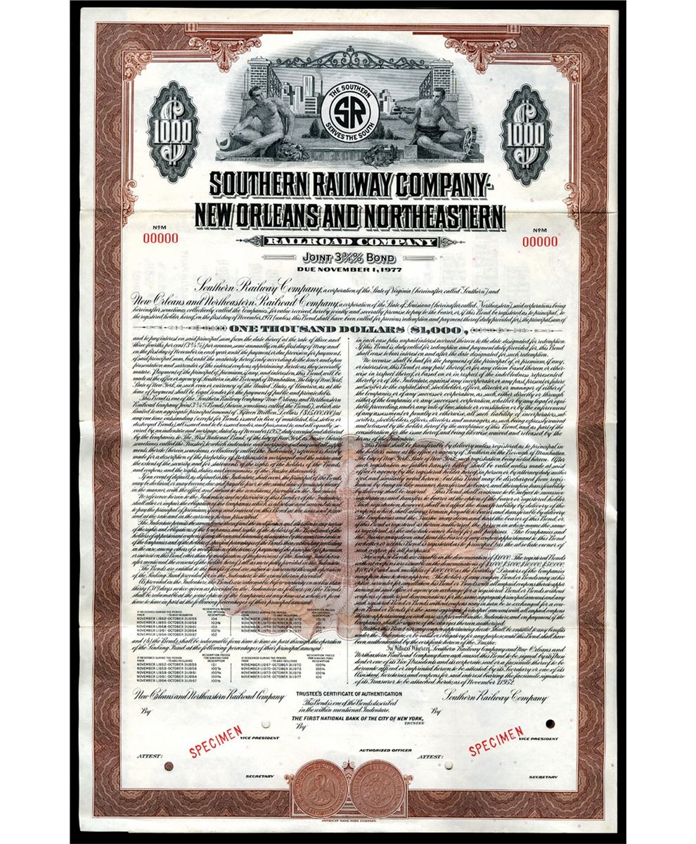 Louisiana. 1952. $1000 Joint 3 3/4% Specimen Bond. Black print with brown border and underprint. XF condition, ABNC.