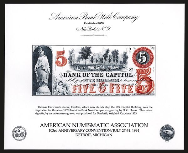 ABNC. Featuring Bank of the Capitol, Lansing, Michigan. 5 Dollar. As made. 150 pieces.