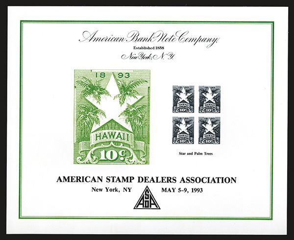 ABNC. Featuring Hawaii 10 Cent block of four. Star and palm trees. As made. 150 pieces.