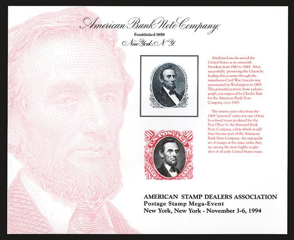 ABNC. Featuring Abraham Lincoln portrait and 90c stamp. As made. 100 pieces.