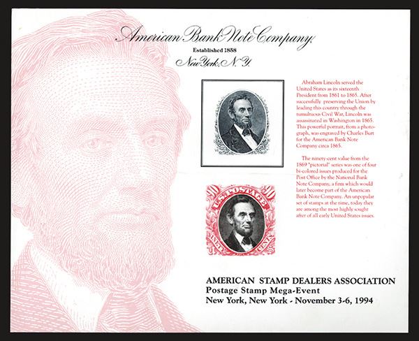 ABNC. Featuring Abraham Lincoln portrait and 90c stamp. As made. 250 pieces.