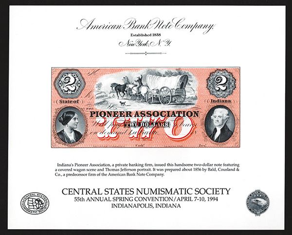 ABNC. Featuring Pioneer Association Bank, Lafayette, Indiana. 2 Dollars. As made. 200 Pieces.