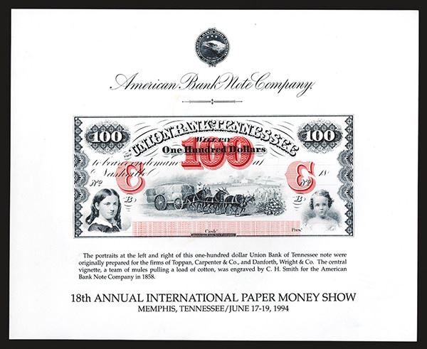 ABNC. Featuring Union Bank of Tennessee, 100 Dollar note. As made. 300 pieces.