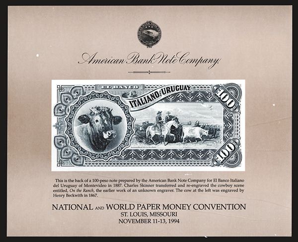 ABNC. Featuring Uruguay Banco Italiano 100 Peso note. As made. 250 pieces.