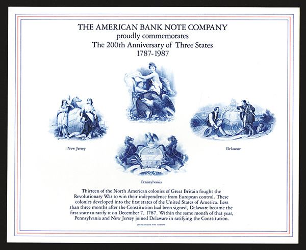 ABNC. Featuring NJ, PA and DE state arms. As made. 500 pieces.