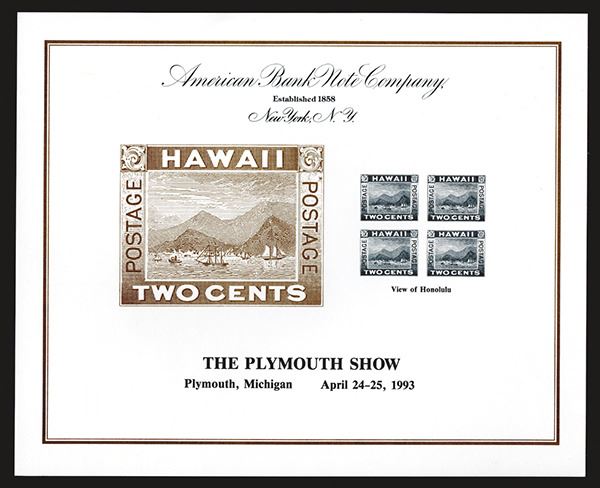 ABNC. Featuring Hawaii 2 Cent block of four. Harbor view. As made. 200 pieces.