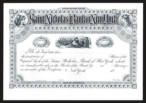 ABNC. Bold stock certificate form with Santa Claus vignette near top center. As made. 100 pieces.