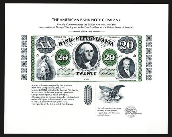ABNC. Featuring Bank of Pittsylvania, VA. 20 Dollar note. As made with envelope. 100 pieces.