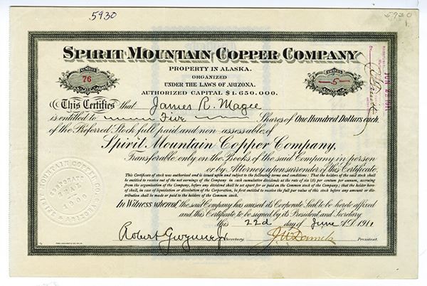 Alaska (Inc. in AZ). 1911. 5 Shares. I/U stock. Black border. No vignette. S/N 76XF condition.