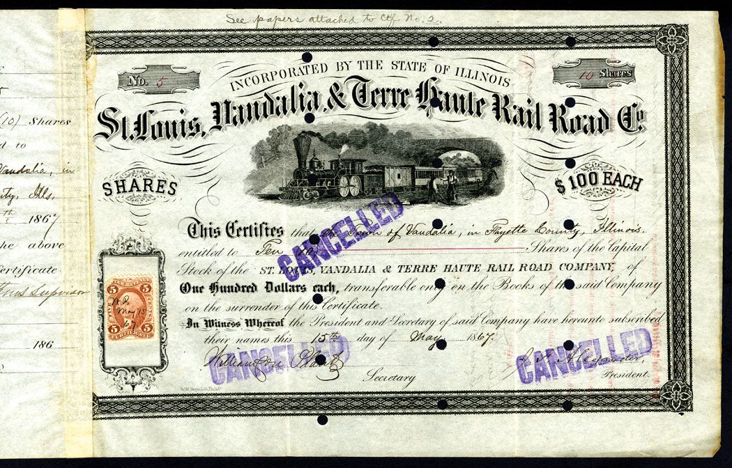Illinois, 10 Shares, I/C, S/N 5, locomotive under tunnel R-L. VF