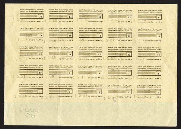 Palestine, Deposit certificate for 5 standard pounds. Coupons on back. Ornate brown border. I/U Fine