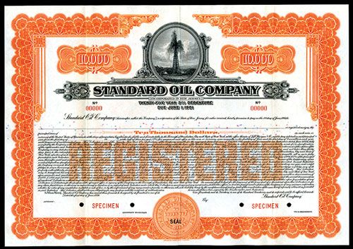 New Jersey, 1936, $10000, 25 Year 3% Specimen Bond, Black on orange border and underprint, Oil well vignette top center, POC's and Red SPECIMEN overprints and red s/n “00000 “, VF condition, ABNC.