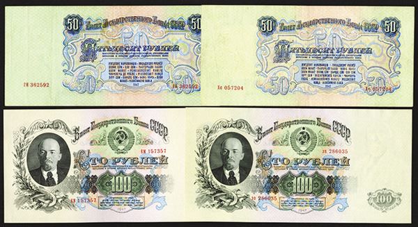 Russia - USSR. 50, 100 Ruble. P-230, 232. Lenin at left and as watermark. Large format. First two Very Fine last two Extremely Fine. 4 pieces.