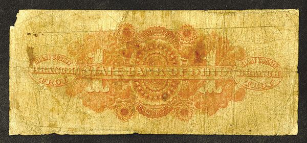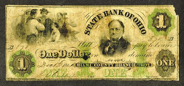 Ohio. 1 Dollar. Wolka 2590-23. portrait at right center. ABNC. Slight paper loss at top right. Very Good.