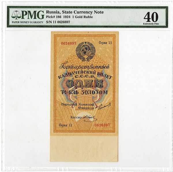 Russia, issued 1 Gold Ruble, P-186, PMG graded Extremely Fine 40.