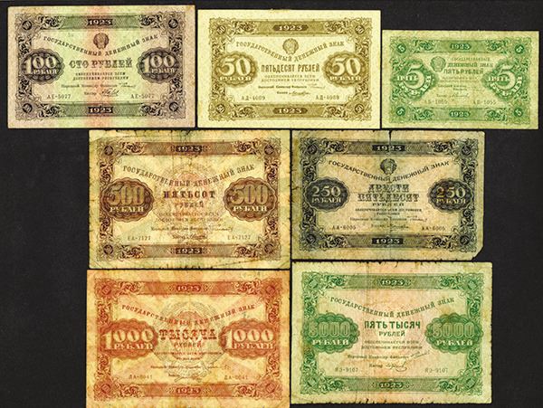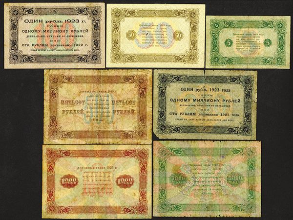 Russia - R.S.F.S.R. 50 Rubles. P-160 (old tape mounting residue), 162 (Good), 164, 168a, 169 (Very Good), 170, 171 (Very Good). Fine unless noted. 7 pieces. (The Silicon Valley Collection)