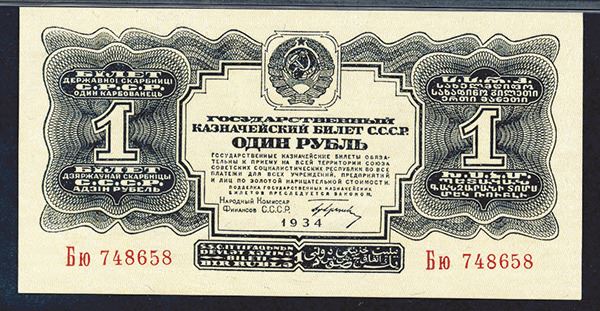 Russia. 1934, 1 Gold Ruble, P-207, Issued banknote, with signatures, black on light orange underprint, S/N's 748658, PMG graded Gem Uncirculated 65 EPQ*, Attractive high grade note.