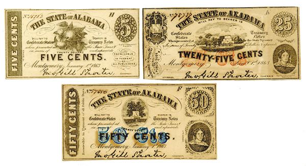Montgomery, Alabama, Lot of 3 notes, Includes 5cts; 25cts and 50cts, all are AU to Choice AU with toning.