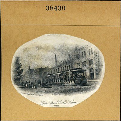 Used on Security Printed documents, stocks and bonds. ca.1880's-90's. 6 different proof vignettes of street cars. All are printed by Western BNC. The vignettes range from 2 to 4 inches in size. All are printed on india paper and mounted on manila card with plate number at top of the card and on the india paper. Condition ranges from Fine to choice condition. Please inspect. WBNC.