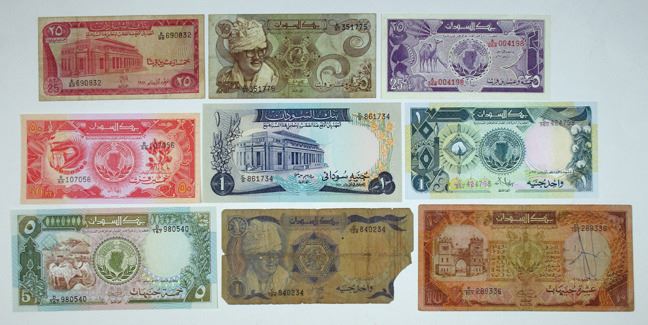 Sudan.....,., 1973-98. Lot of 14 Issued Banknotes, includes: 25, 50 Piastres, 1, 5, 10, 20, 100 Sudanese Pounds, and 10, 100, 500 Sudanese Dinars . P-11b; 13a; 16a; 18a; 30; 34; 39; 40c; 44b; 47; 52a; 55a; 58a. Notes range from VF to CU condition. (14). Sold "AS IS" no returns accepted.