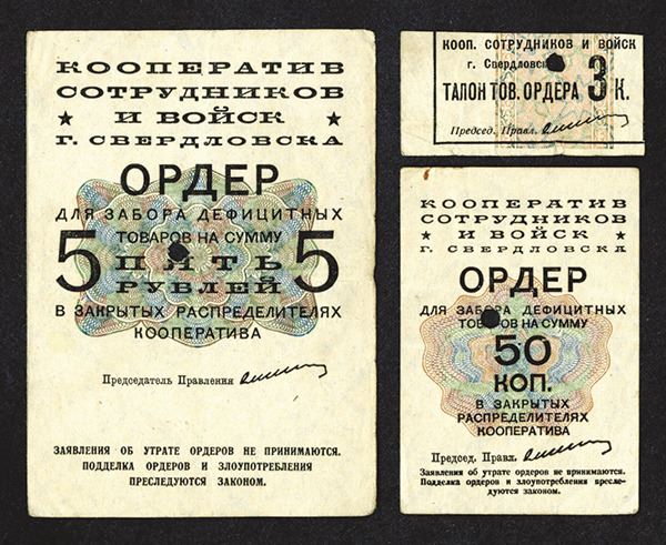 Russia. 3, 50 Kopeks, 5 Rubles. Cooperative of Staff and troops of Sverdlovsk City (NKUD). KGB predecessor. POC in each. Very Fine. 3 pieces.