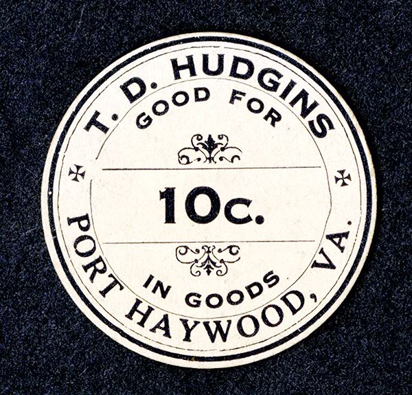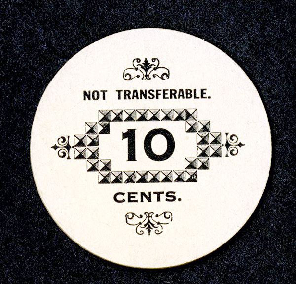 Good For 10c. Round cardboard chit. Reverse: Not Transferable 10 Cents. Extremely Fine.